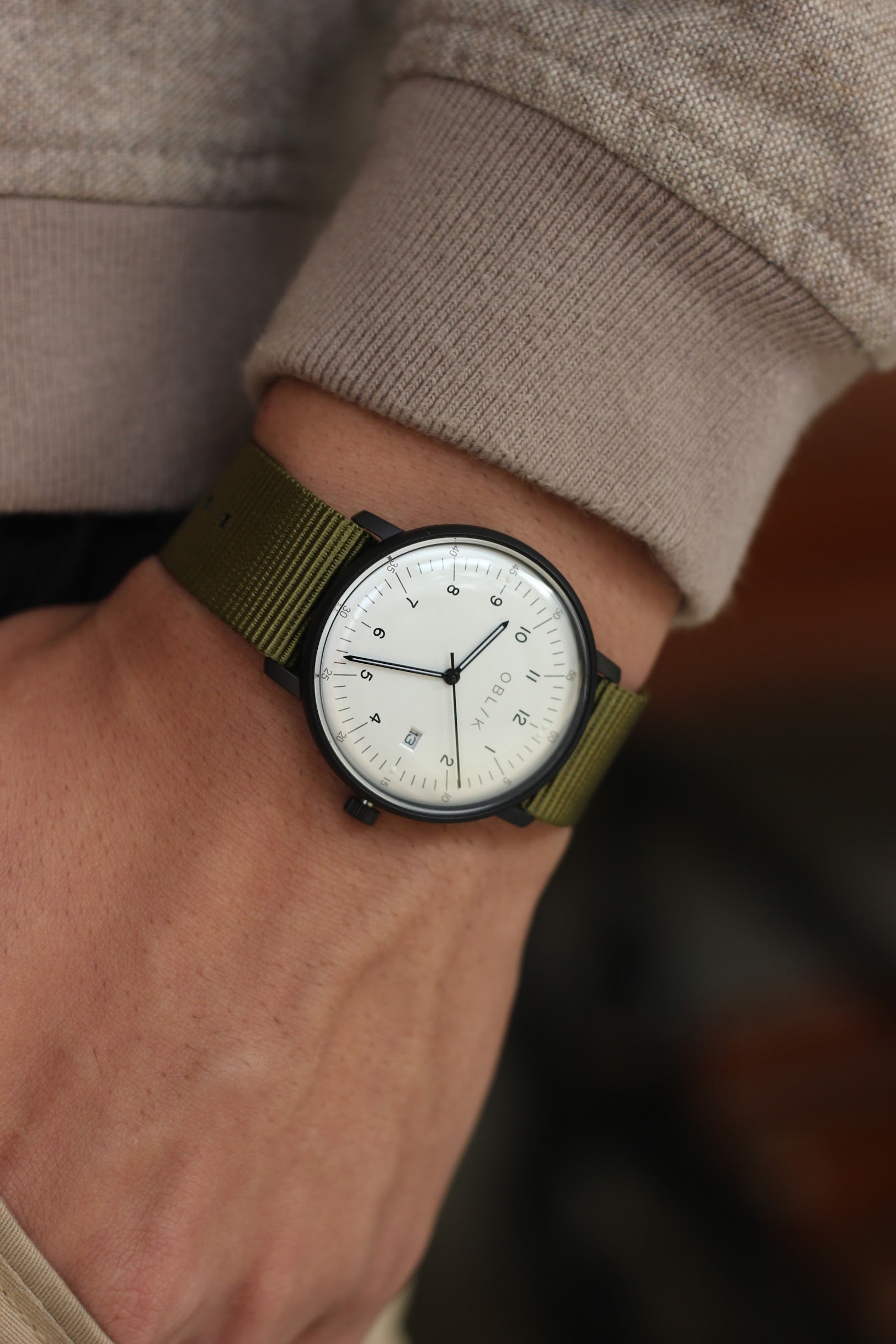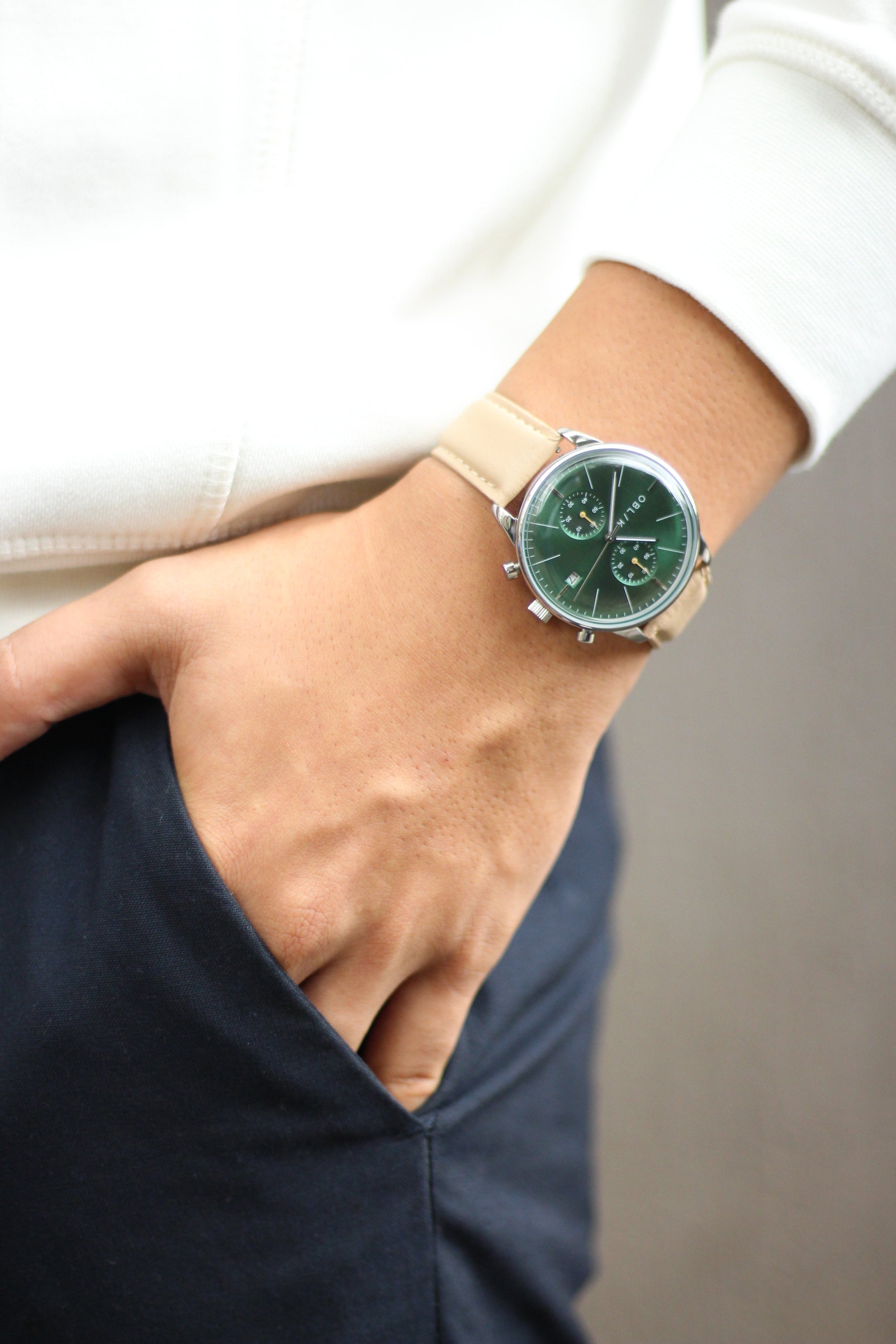Beautiful watch that looks super clean and elegant at the same time! The clean white dial with beautiful dome case makes it stand out! the green strap just ads a little bit of character to it! Overall a great looking watch! German design sensibilities at display :)